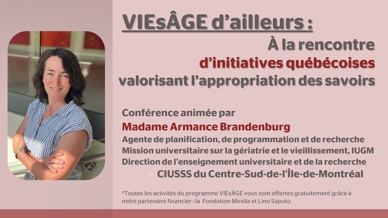 Le programme VIEsÂGE est réalisé grâce à notre partenaire financier : la Fondation Mirella et Lino Saputo.